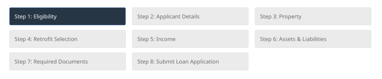 2. Apply for the loan by walking through Step 1-Step 8 shown below